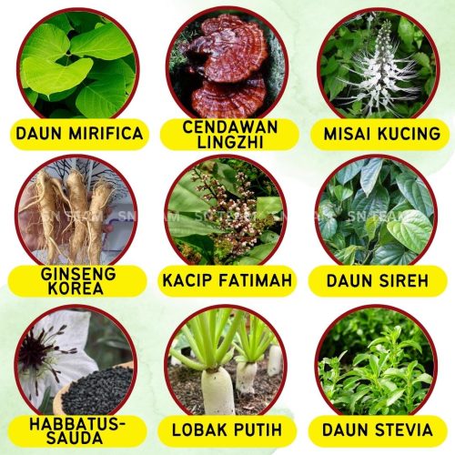 Untuk melengkapkan keberkesanan, Jus Qaura ditambah lagi 9 herba yang diperakui turun-temurun akan kehebatannya.